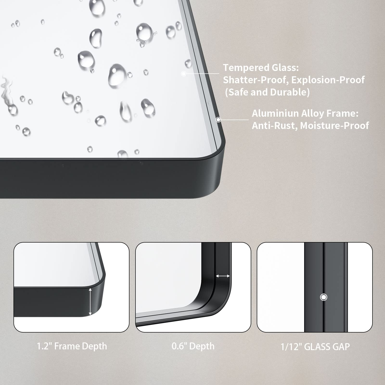 【Safe & Secure Package】: The package for this wall mounted bathroom mirror is well and securely designed with all-around protective Styrofoam with passed drop test. no worry about the breakage.