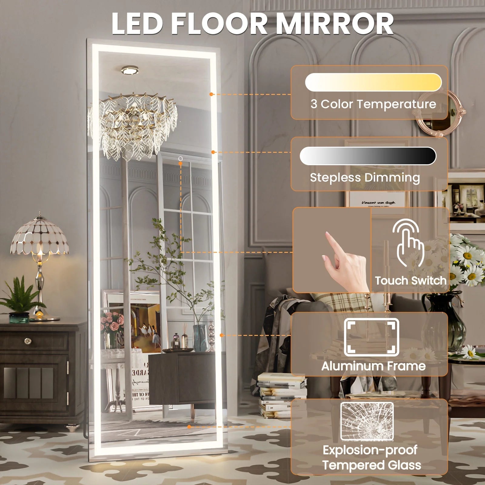 【3 WAYS TO USE & EASY MOUNT】 The led full body mirror with light can be used as floor mirror / wall mirror / leaning mirror to suit your different room type and usage needs. If you want to mount it on the wall, the mounting accessories are included in the package.